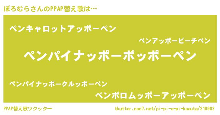 | ピコ太郎風あだ名 | 『ピコボ郎』『ボコ六郎』『ボロ四郎』 |