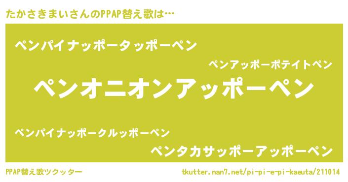 | ヘコむあだ名 | 『たかもー』『たかさきまい(震え声)』 |