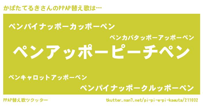 | 料理風あだ名 | 『かばたてるきのカルパッチョ風』 |