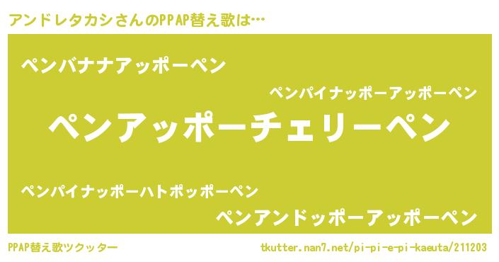| ピコ太郎風あだ名 | 『ピア一郎』『アコ次郎』『アン十郎』 |