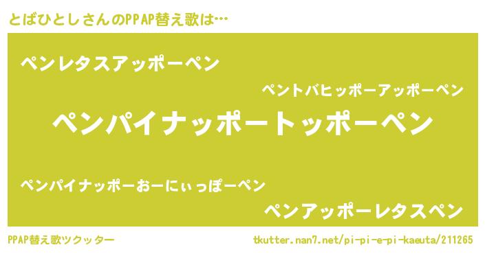 | ヘコむあだ名 | 『とばひとし(遠い目)』『とばにゅー』 |