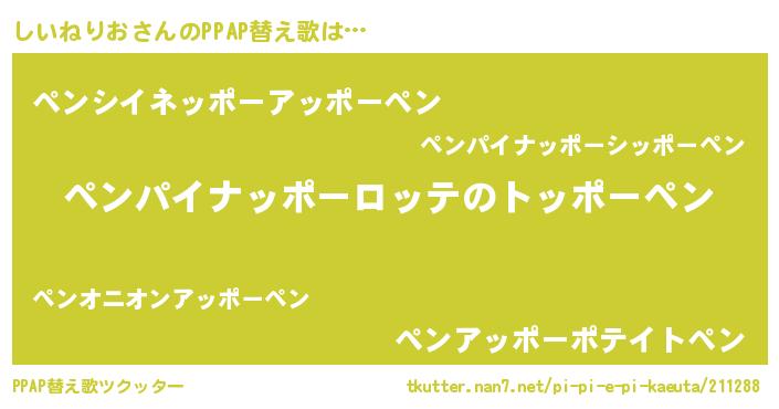 | 男性向けラノベタイトル風あだ名 | 『おまえをオタクにしてやるから、俺をしいねりおにしてくれ! 』 |