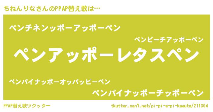 | 男性向けラノベタイトル風あだ名 | 『Re:ちねんりなから始める異世界生活』 |