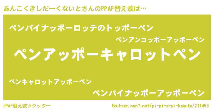 | 欧米人風あだ名 | 『アンジェラ・あんこくきしだーくないと』 |