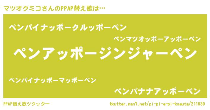 | 欧米人風あだ名 | 『ダレノガレマツオクミコ』 |