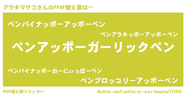 | 肩書あだ名 | 『アラキマサコ総統』『アラキマサコ船長』 |