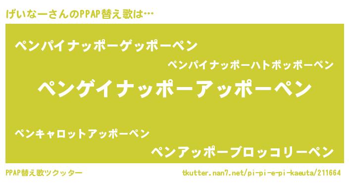 | 意味不明あだ名 | 『自称げいなー』『なめこ科げいなー属』 |