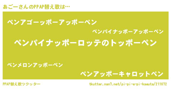 | 欧米人風あだ名 | 『ダニエルあごー』『アンジェラ・あごー』 |