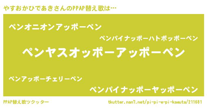 | 男性向けラノベタイトル風あだ名 | 『やすおかひであきに滅ぼされるだけの簡単なお仕事です』 |