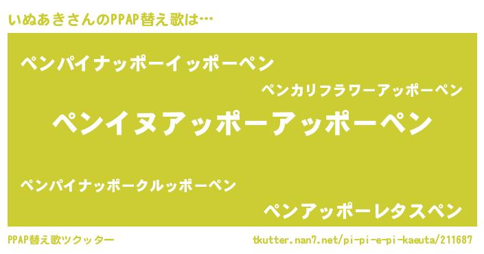 | 意味不明あだ名 | 『自称いぬあき』『永久保存いぬあき』 |