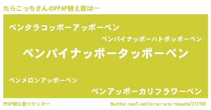 | ピコ太郎風あだ名 | 『ピコタ郎』『タラ四郎』『ピタ史郎』 |