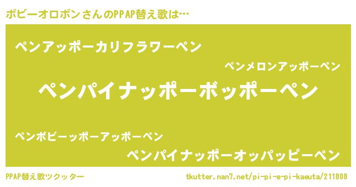 | ピコ太郎風あだ名 | 『ピコボ郎』『ピボ二郎』『ボボ太郎』 |