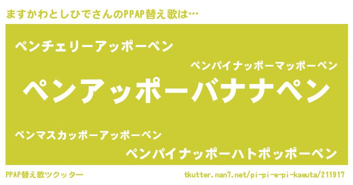 | 男性向けラノベタイトル風あだ名 | 『ますかわとしひでに滅ぼされるだけの簡単なお仕事です』 |