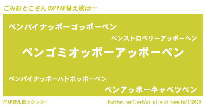 | ピコ太郎風あだ名 | 『ゴミ三郎』『ピコゴ郎』『ピゴ四郎』 |