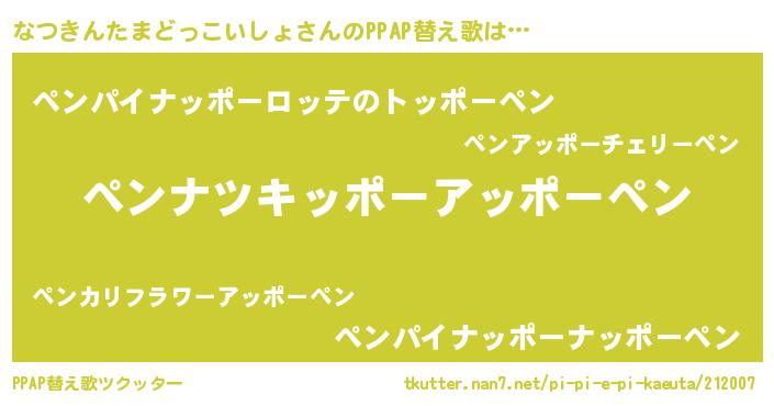 | 意味不明あだ名 | 『とにかく怪しいなつきんたまどっこいしょ』 |