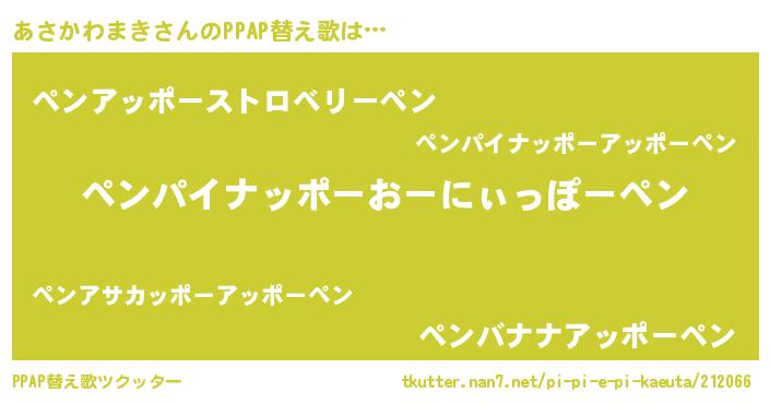 | 肩書あだ名 | 『あさかわまき教官』『あさかわまき少尉』 |