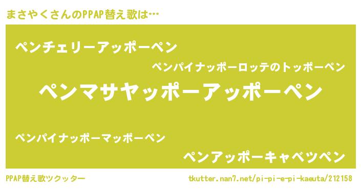 | ピコ太郎風あだ名 | 『マサ一郎』『マコ三郎』『ピマ四郎』 |