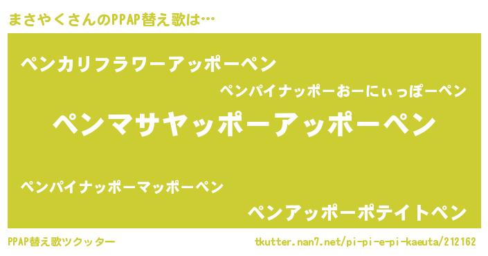 | ピコ太郎風あだ名 | 『マサ二郎』『マコ二郎』『ピマ五郎』 |