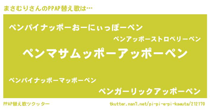 | ピコ太郎風あだ名 | 『マサ三郎』『ママ太郎』『マコ十郎』 |