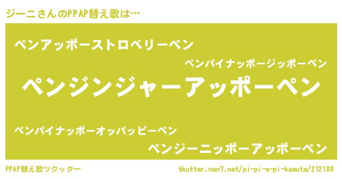 | ピコ太郎風あだ名 | 『ジコ五郎』『ピジ六郎』『ジー一郎』 |