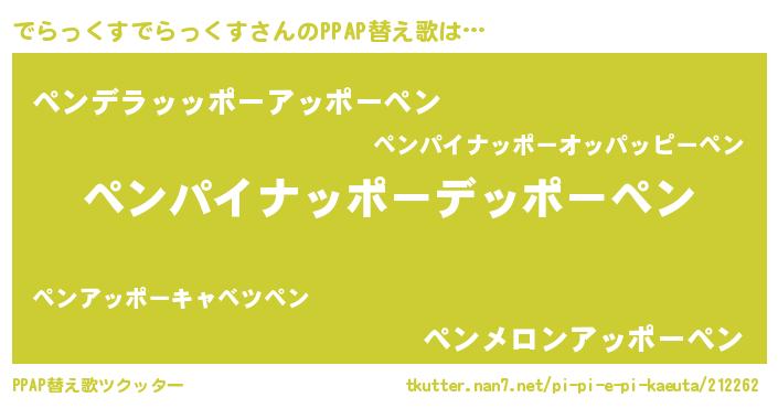 | 男性向けラノベタイトル風あだ名 | 『でらっくすでらっくすに滅ぼされるだけの簡単なお仕事です』 |
