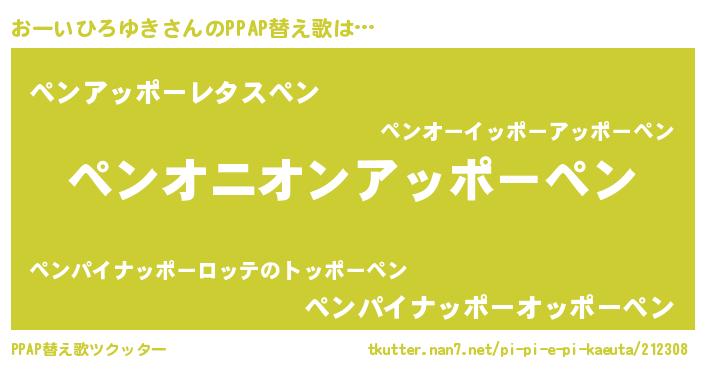 | 意味不明あだ名 | 『ペロリンおーいひろゆき』 |