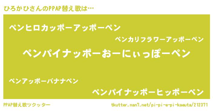 | ピコ太郎風あだ名 | 『ヒヒ太郎』『ヒロ八郎』『ピコヒ郎』 |