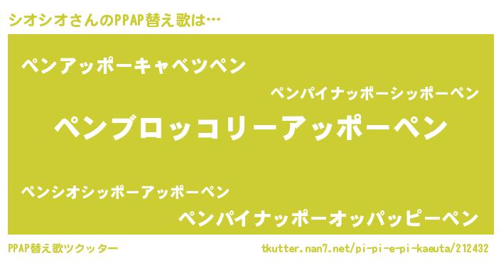 | 2回繰り返すあだ名 | 『シオシオ』『すーすー』『シシオオ』 |
