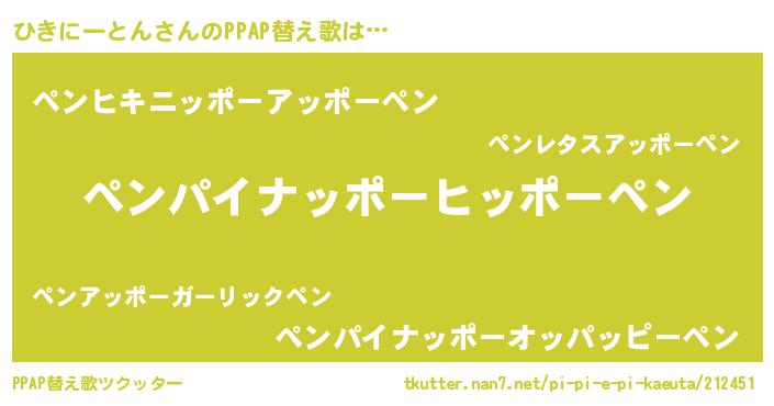 | ピコ太郎風あだ名 | 『ピコヒ郎』『ヒキ一郎』『ヒヒ太郎』 |