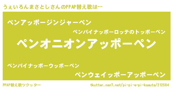 | ピコ太郎風あだ名 | 『ウコ六郎』『ピウ太郎』『ウェ八郎』 |