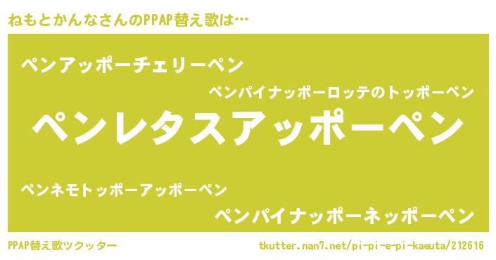 | ピコ太郎風あだ名 | 『ネコ史郎』『ピネ八郎』『ピコネ郎』 |