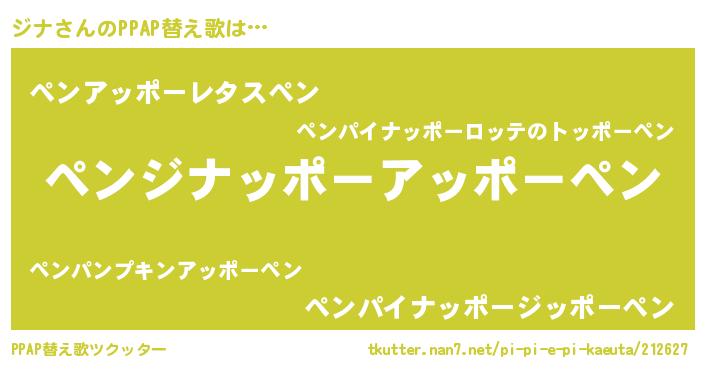 | ピコ太郎風あだ名 | 『ジナ太郎』『ピジ六郎』『ピコジ郎』 |