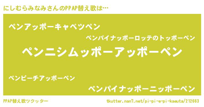 | ポケモン風あだ名 | 『ヒニシムラミナミ』『ニシムダネ』 |