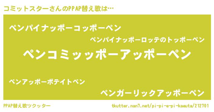 | ピコ太郎風あだ名 | 『コミ四郎』『ピココ郎』『ココ十郎』 |