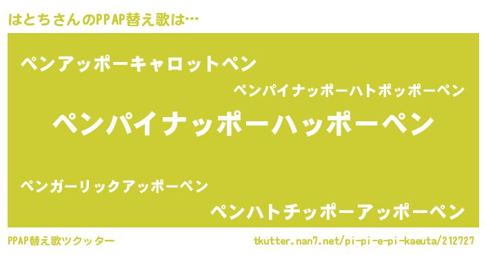 | ピコ太郎風あだ名 | 『ピコハ郎』『ピハ八郎』『ハト史郎』 |