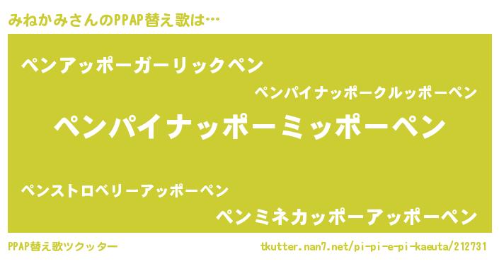 | 意味不明あだ名 | 『ヨモギ科みねかみ属』『自称みねかみ』 |