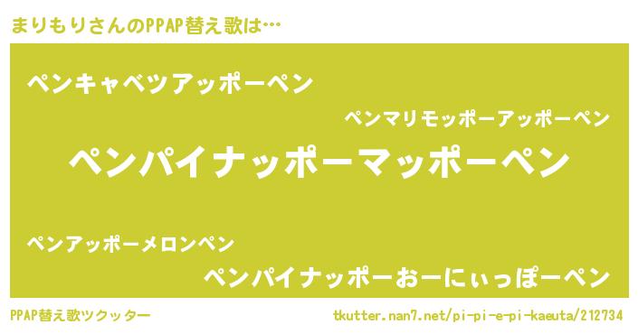 | 男性向けラノベタイトル風あだ名 | 『Re:まりもりから始める異世界生活』 |