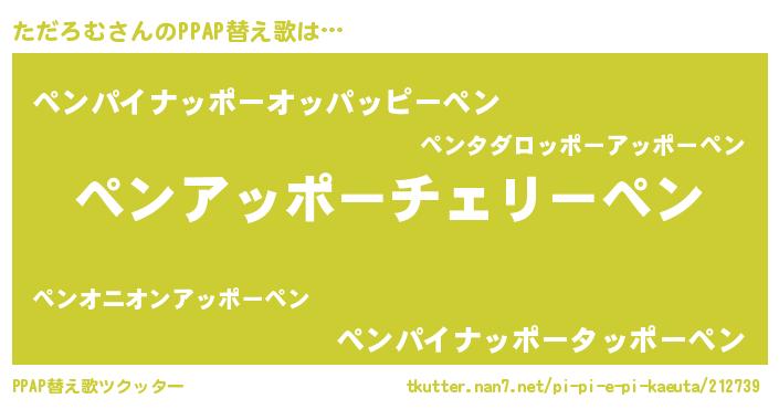 | ピコ太郎風あだ名 | 『ピタ一郎』『タタ太郎』『ピコタ郎』 |