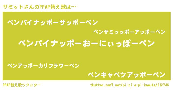 | 男性向けラノベタイトル風あだ名 | 『Re:サミットから始める異世界生活』 |