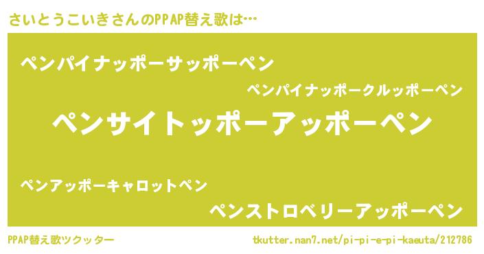| 欧米人風あだ名 | 『ウサインさいとうこいき』 |