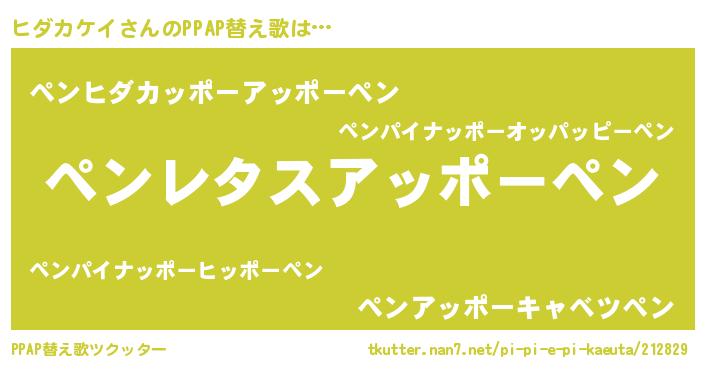 | 料理風あだ名 | 『ヒダカケイのカルパッチョ風』 |