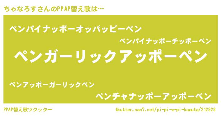 | 意味不明あだ名 | 『自称ちゃなろす』『ペロリンちゃなろす』 |