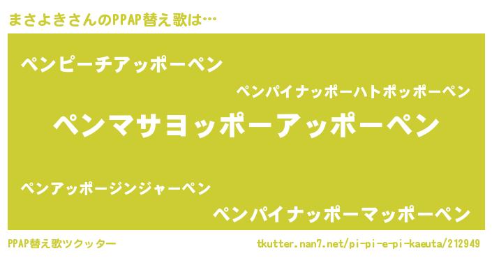 | 男性向けラノベタイトル風あだ名 | 『まさよきの嫁は女の子じゃないと思った?』 |