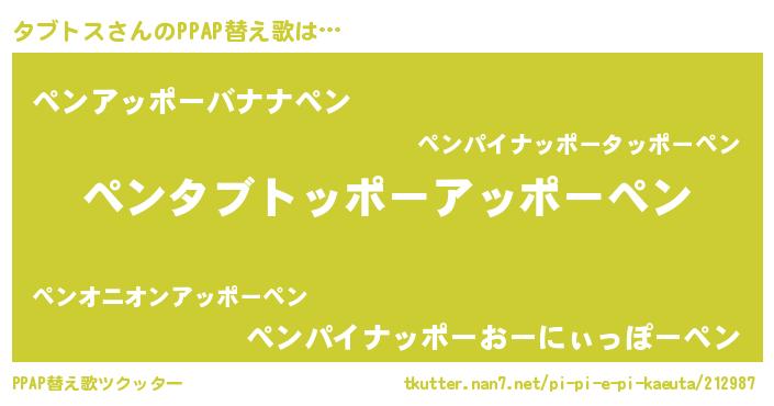 | ピコ太郎風あだ名 | 『タブ六郎』『ピタ十郎』『タタ太郎』 |