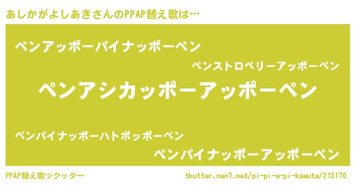 | ポケモン風あだ名 | 『ヒアシカガヨシアキ』『アーシイ』 |