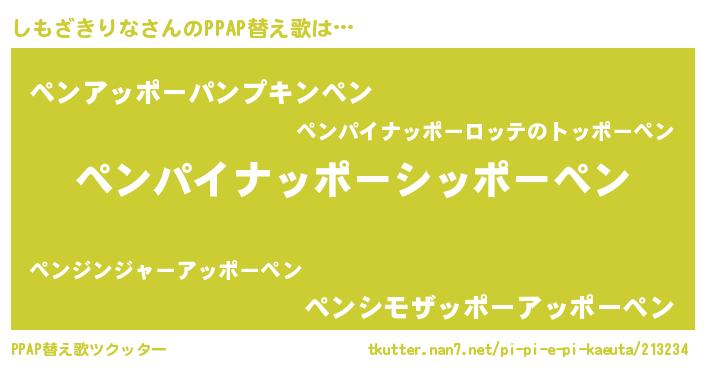 | 料理風あだ名 | 『満腹しもざきりなマフィン』 |
