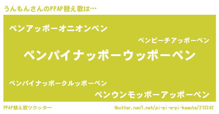 | ピコ太郎風あだ名 | 『ピコウ郎』『ピウ六郎』『ウン次郎』 |