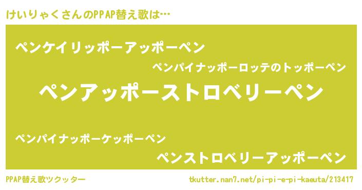| ピコ太郎風あだ名 | 『ピケ一郎』『ケイ史郎』『ケコ一郎』 |
