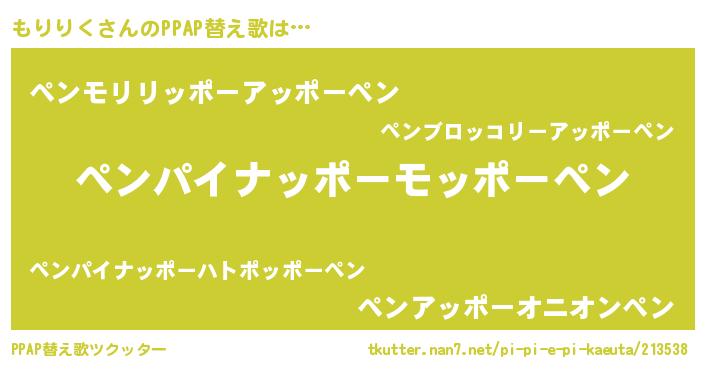 | 男性向けラノベタイトル風あだ名 | 『もりりくに滅ぼされるだけの簡単なお仕事です』 |