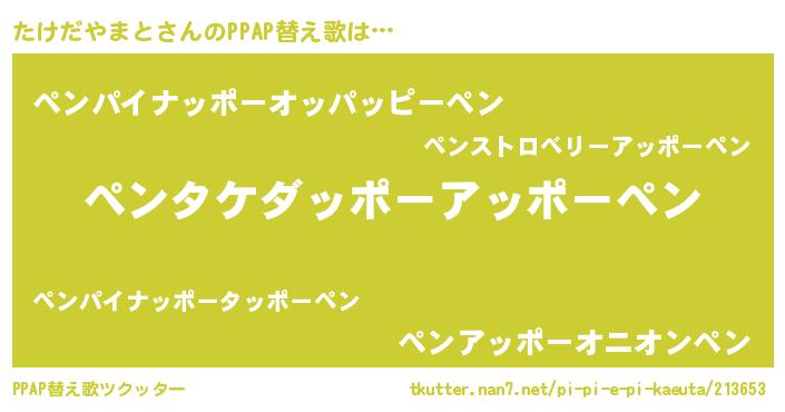 | ピコ太郎風あだ名 | 『タケ一郎』『タタ太郎』『ピタ五郎』 |